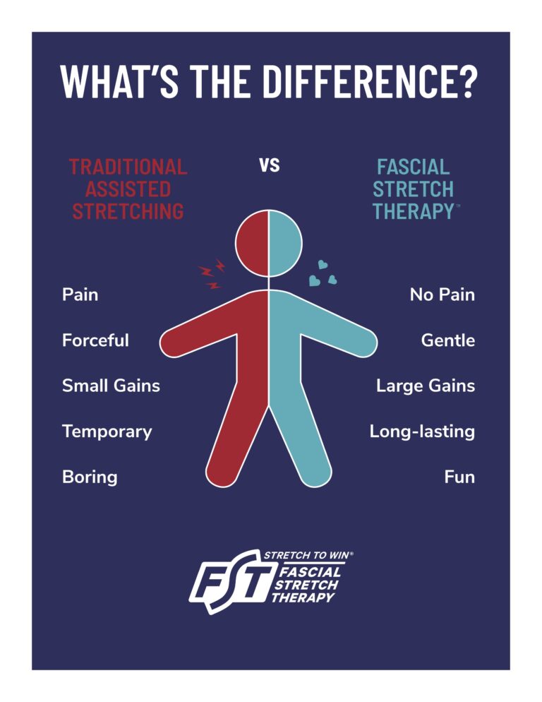 FST isn’t the stretching you did in Grade School. The 1-on-1 fascial stretch approach can produce almost instant results alleviating pain, increasing mobility and range of motion, reducing stress, improving sports performance and much more!